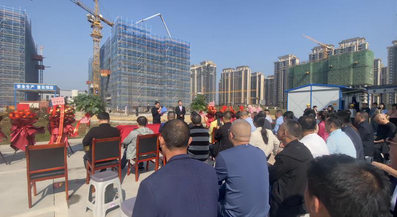 而后,施工單位湖南營田建筑有限公司項目經理陳堅為封頂儀式致辭。陳經理向參與項目建設的各單位表示了感謝,且對千盟的發展表達了衷心的祝福!