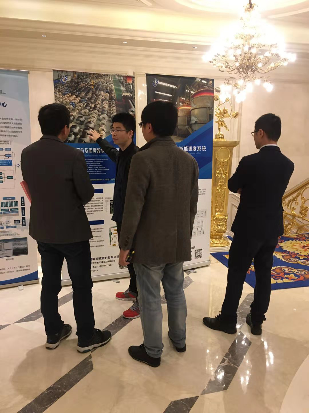 客戶蒞臨千盟展位,咨詢天車定位及庫房智能管理系統