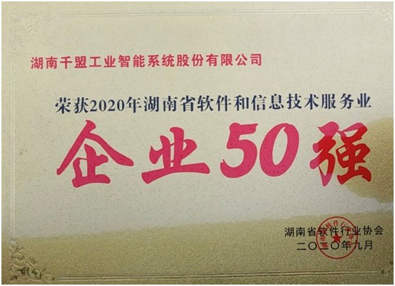 湖南千盟榮獲湖南省軟件和信息技術服務業企業50強