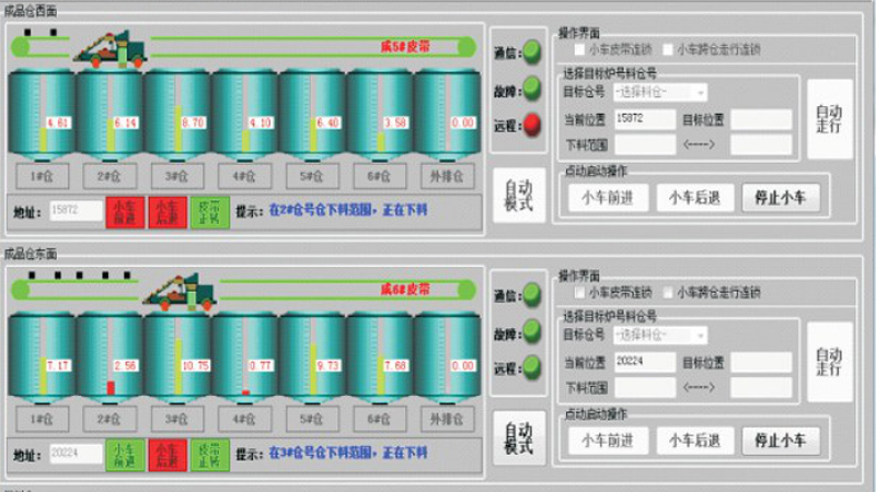 布料小車在現(xiàn)場的每一個實際位置在系統(tǒng)中都有地址一一對應,且精度能達到2mm。料位