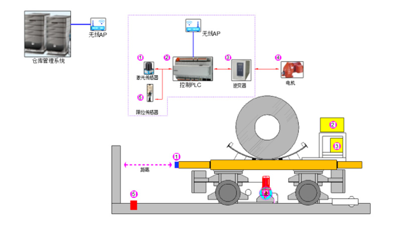 過跨車主要用于庫與庫之間、跨與跨之間轉運物料,通過對過跨車進行無人化改造,實現自動轉運。
